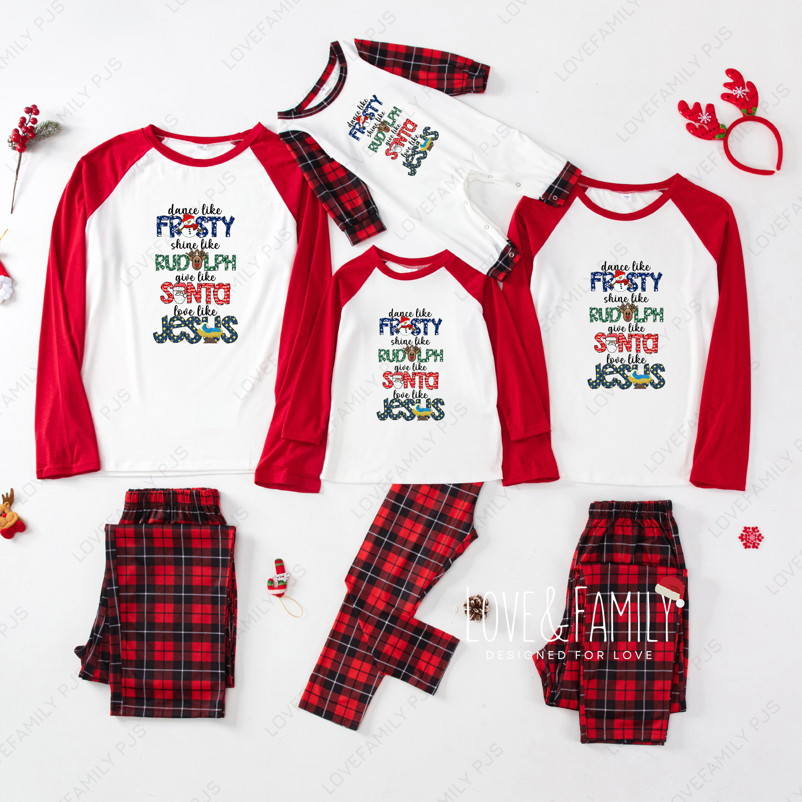 Dance Like Frosty, Love Like Jesus Family Red Plaid Pajamas Sets