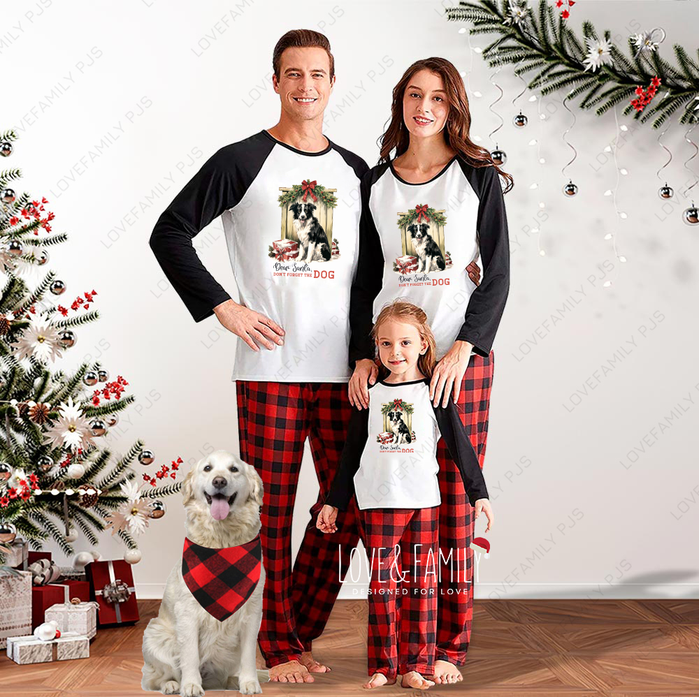 Dear Santa Don't Forget The Dog Christmas Family Pajamas Red Plaid PJs Sets