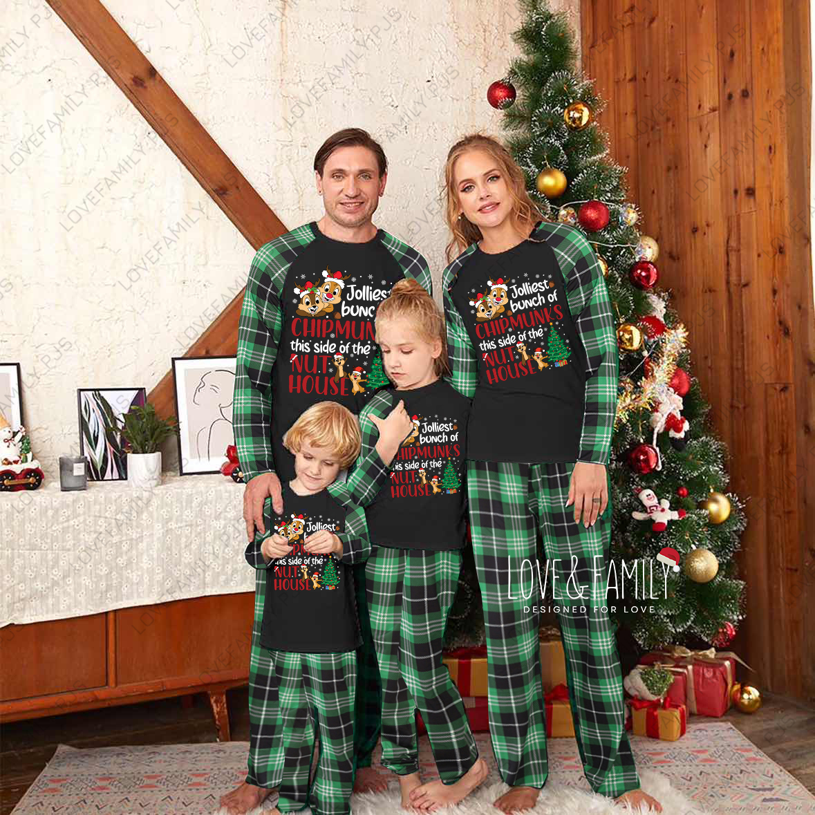 Disney Chip and Dale Christmas Family Pajamas Green Plaid PJs Sets