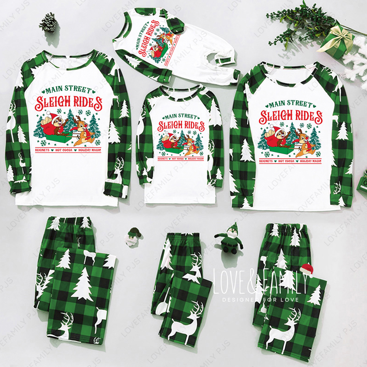 Disney Chip and Dale Christmas Green Family Matching Pajamas Sets