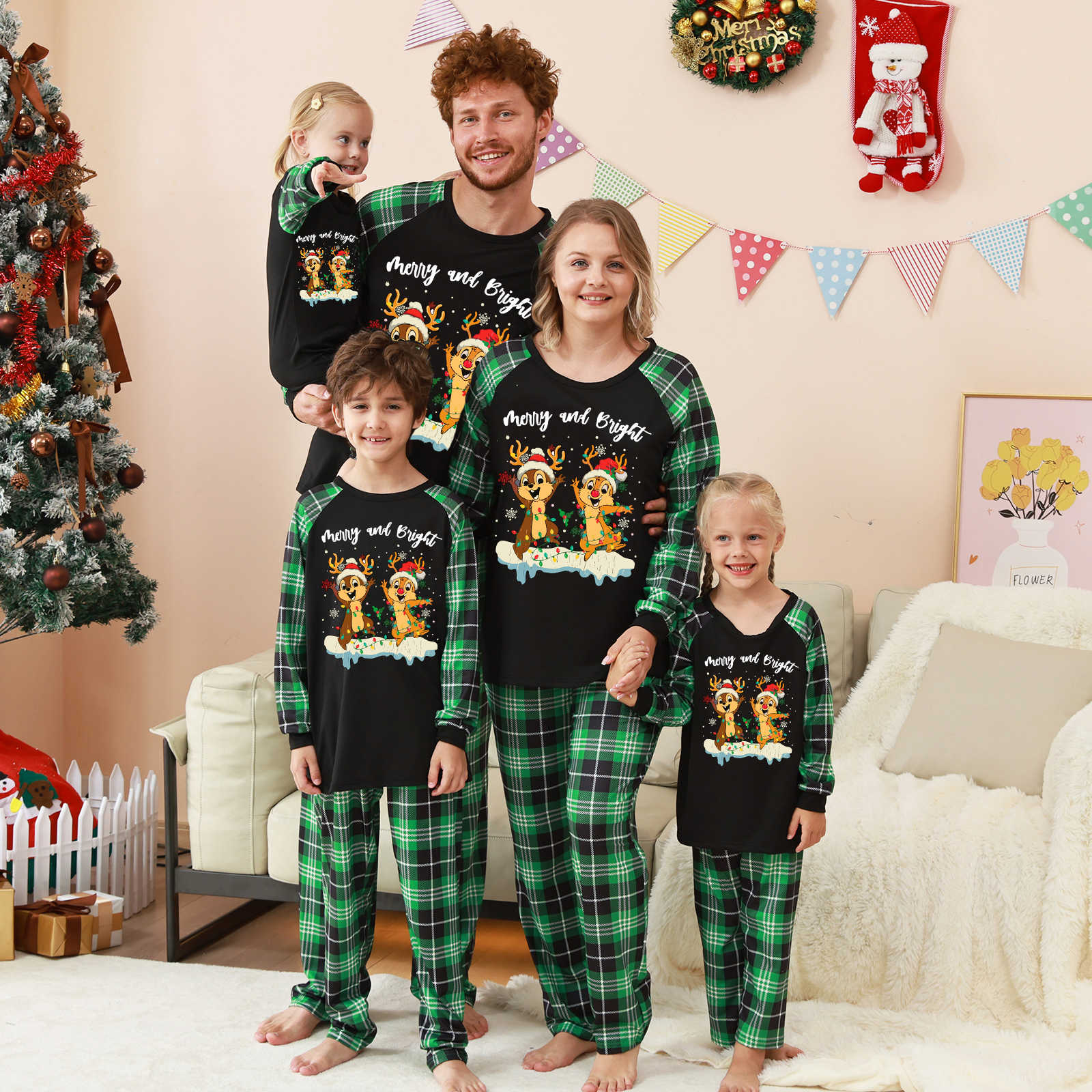 Disney Chip and Dale Merry & Bright Christmas Family Green Plaid PJs Sets