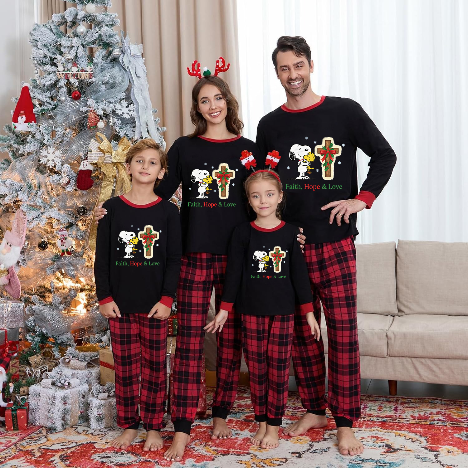 Faith,Hope&Love Christmas Family Pajamas Peanuts Holiday Matching PJs Set