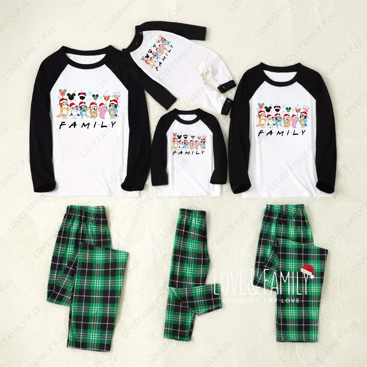 Family Bluey Christmas Green Plaid Matching Pajamas Sets