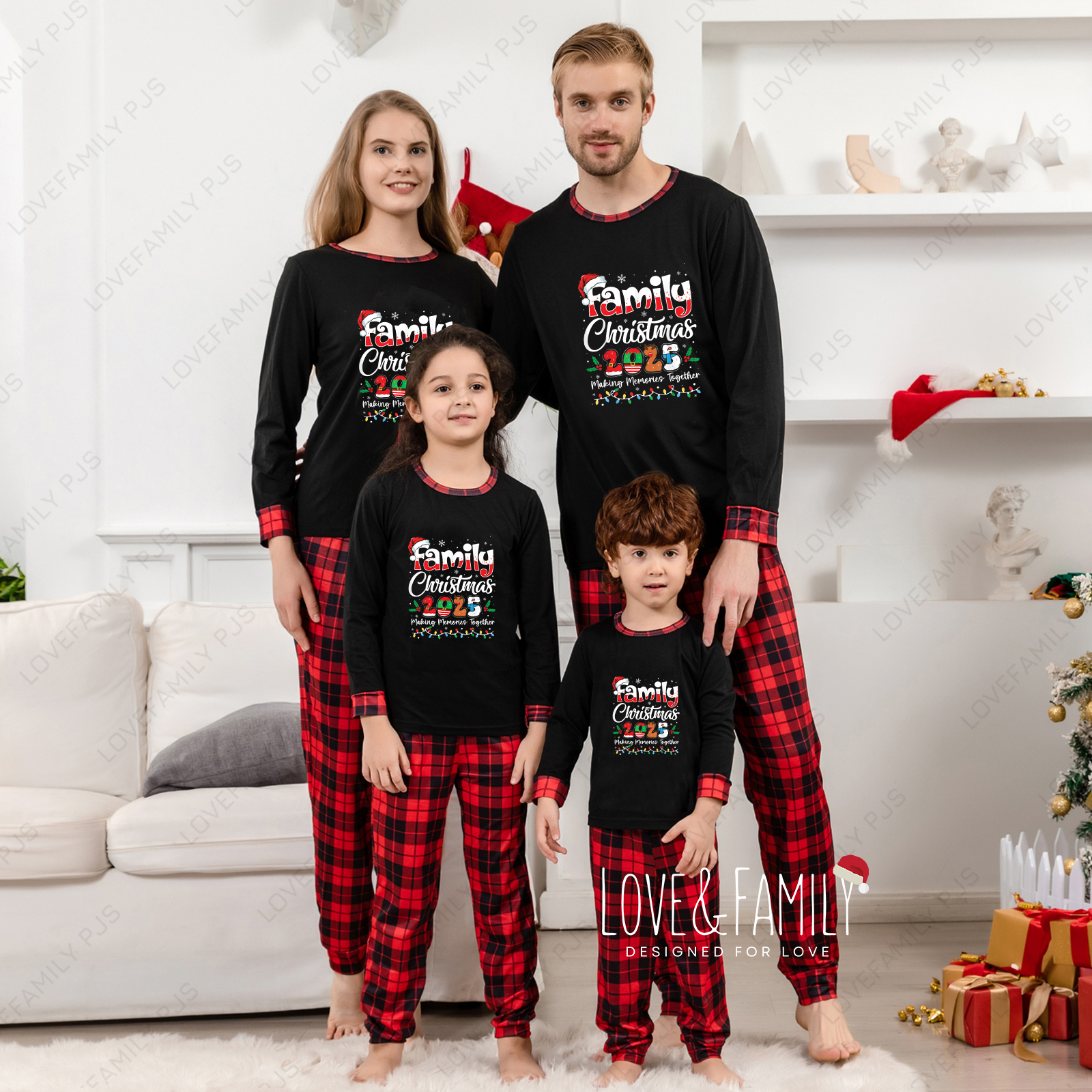 Family Christmas 2025 Matching Pajamas Red Black Plaid PJs Sets