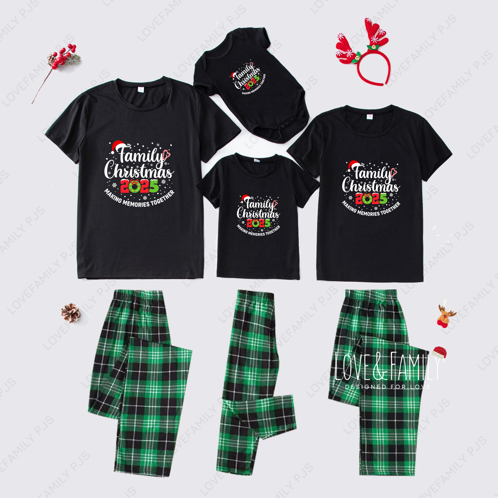 Family Christmas 2025 Matching Short Sleeve Green Plaid Pajamas Sets