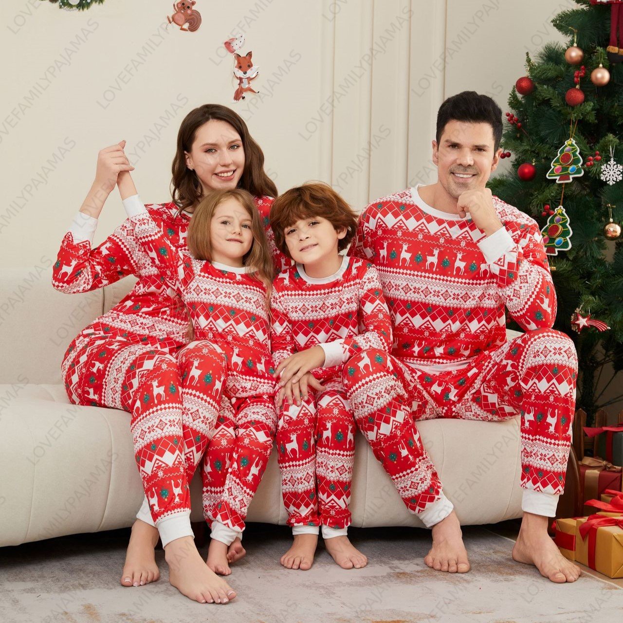 Family Christmas Pajamas Red Traditional Reindeer Print PJS