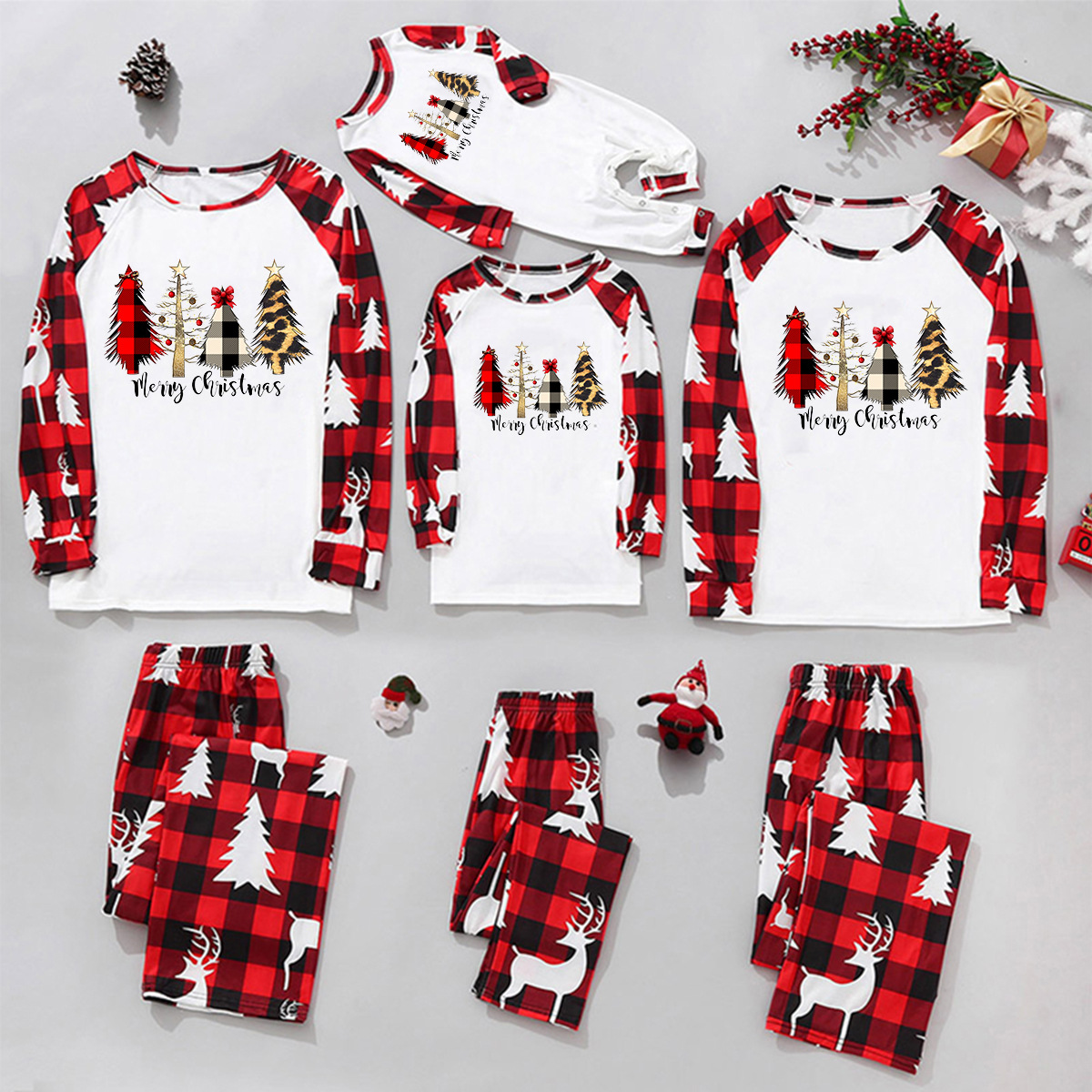 Family Matching Pajamas Plaid Stitching Printing Cchristmas Tree