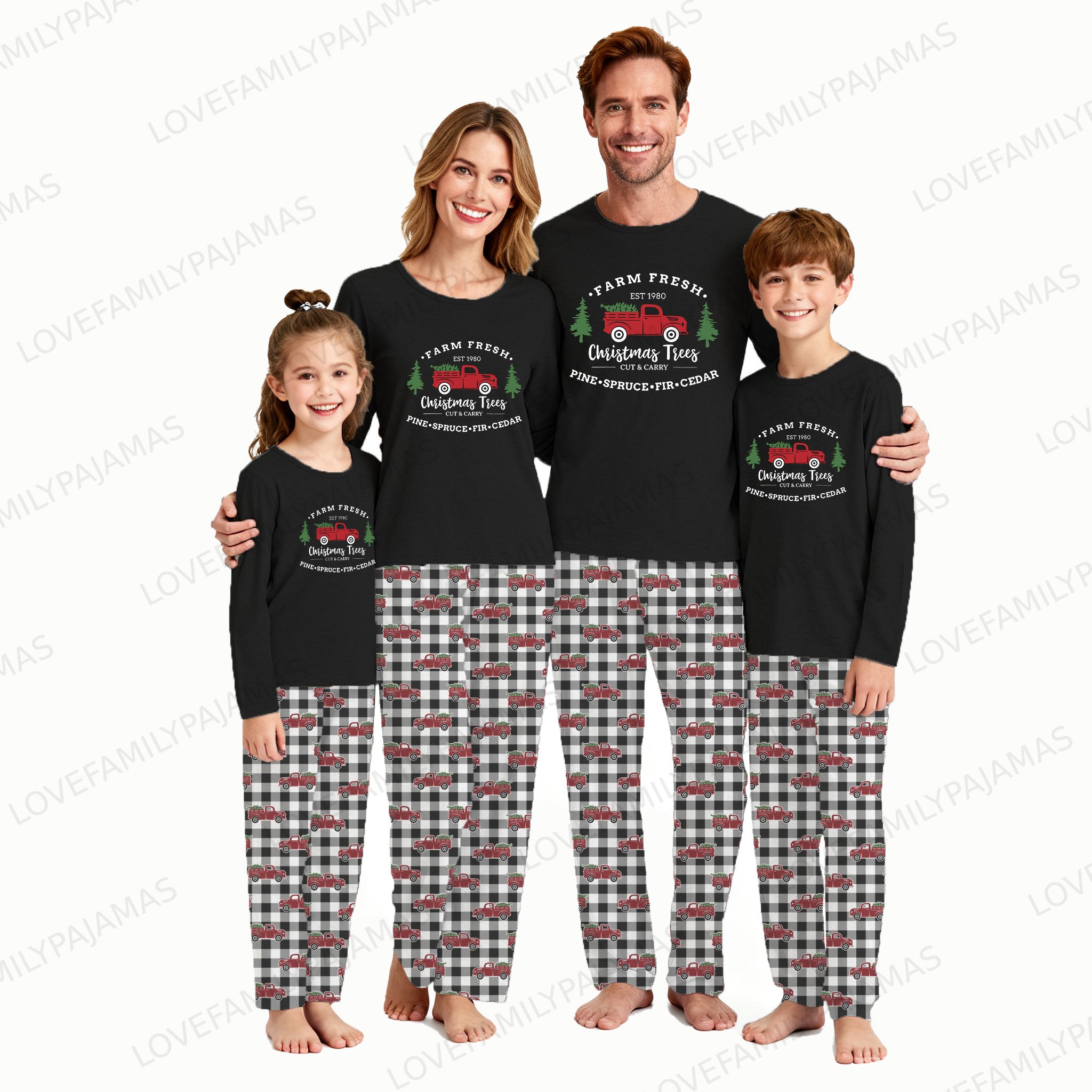 Farm Fresh Christmas Trees Truck Pajamas For Families with Pockets