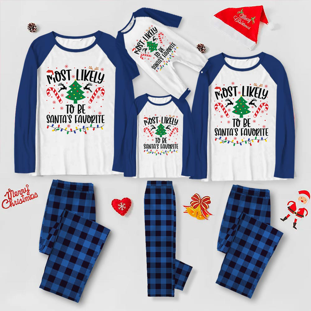 Fun Personalized Most Likely To Family Pajamas Blue Plaid PJS Sets