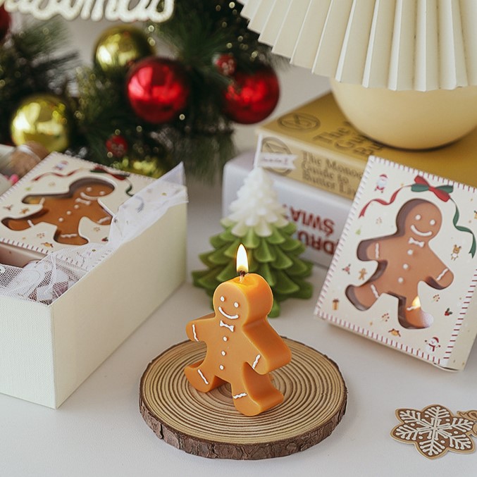 Gingerbread Handmade Christmas Candle with Cute Gift Box
