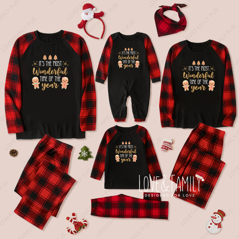 Gingerbread Man Wonderful Time Christmas Family Pajamas Sets(Black)