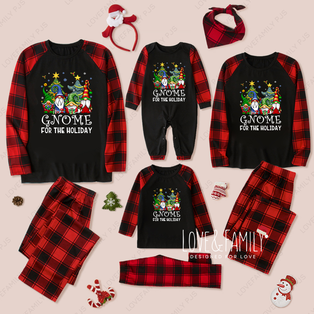 Gnome For The Holiday Christmas Family Buffalo Plaid Pajamas Sets(Black)