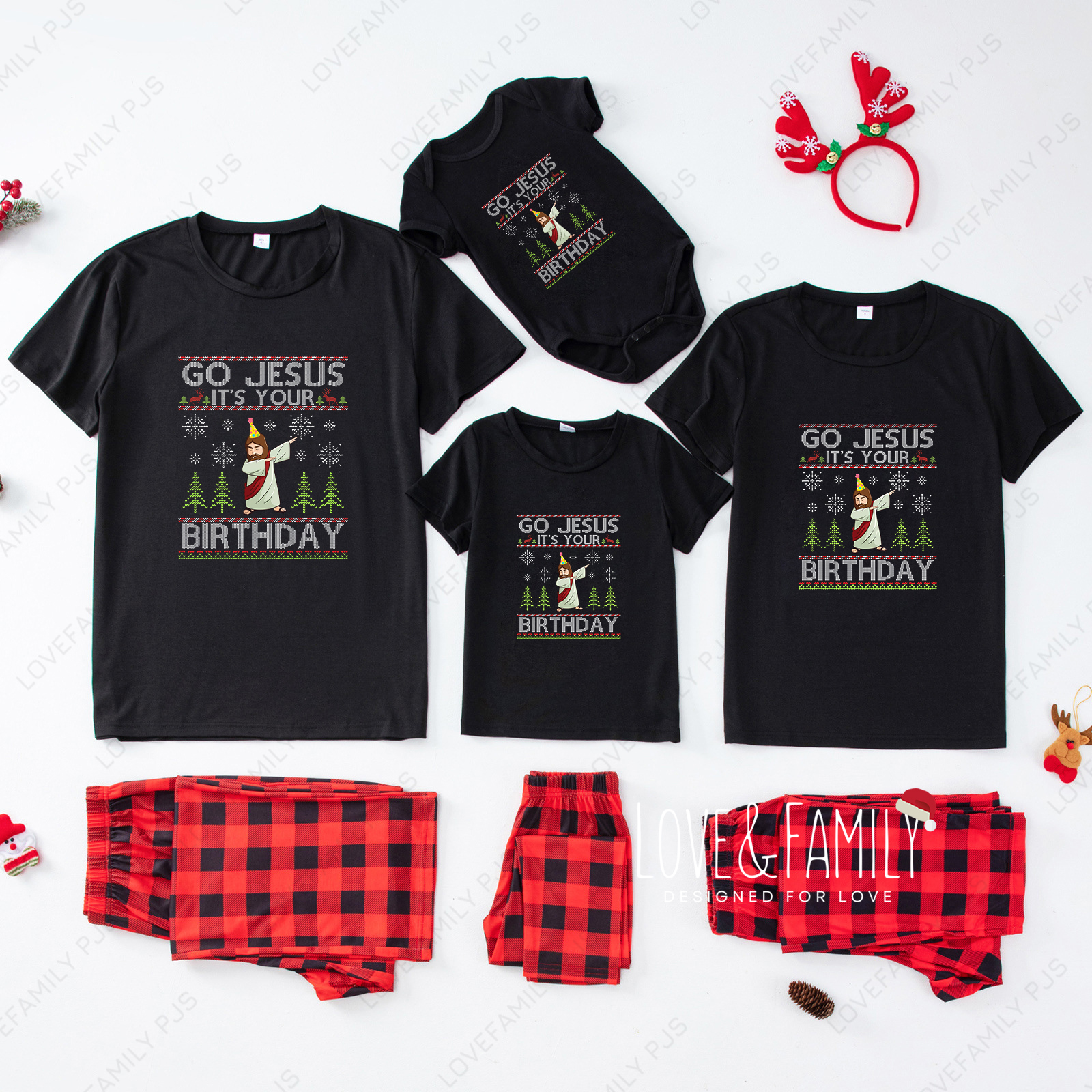 Go Jesus It‘s Your Birthday Christmas Short Sleeve Pajamas Sets