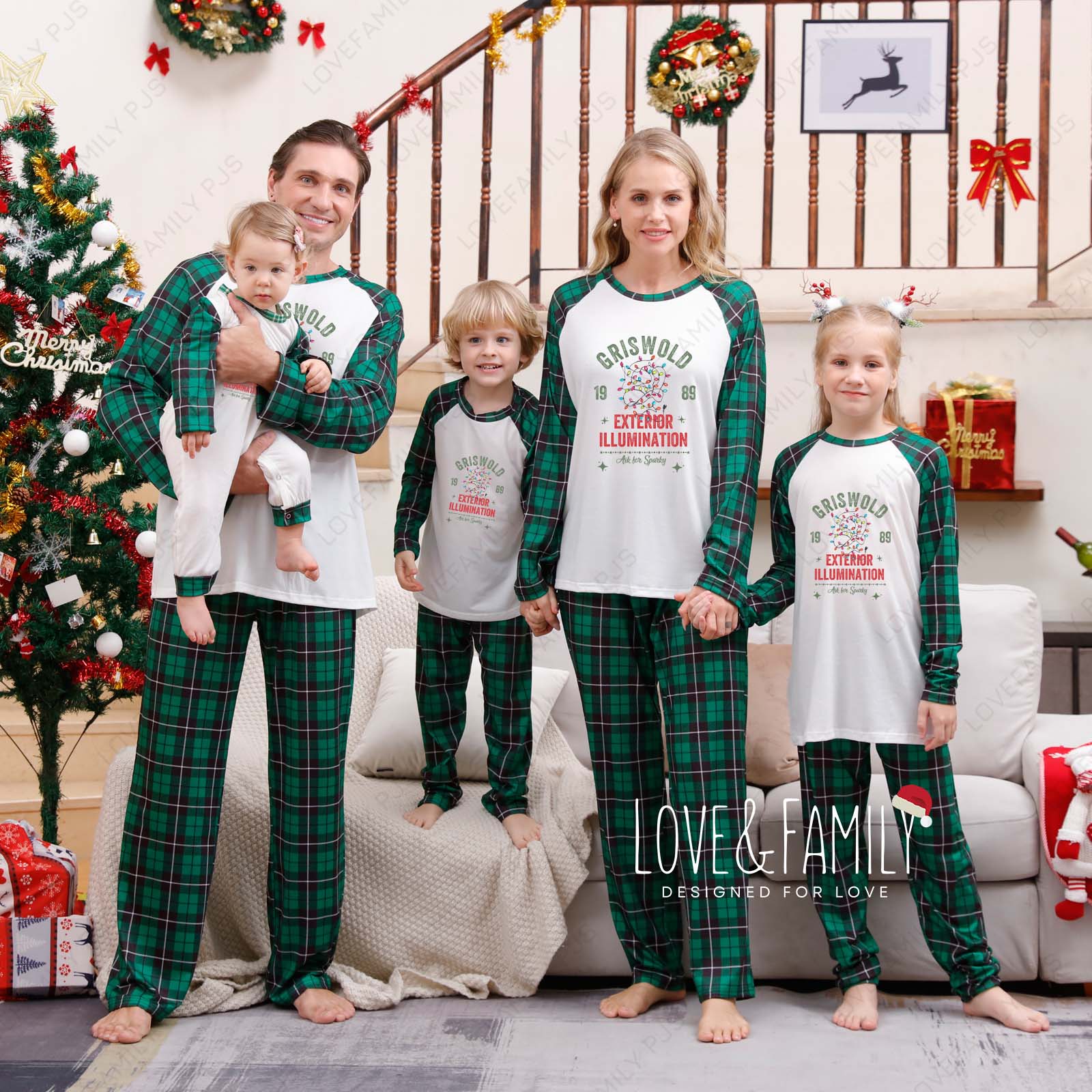 Griswold 1989 Christmas Green Plaid Matching Family Pajamas Sets