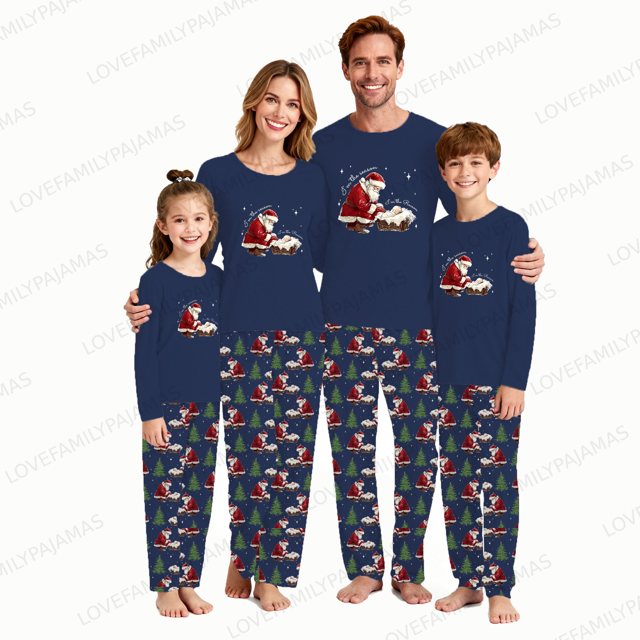 He's the Reason Santa with Baby Jesus Family Pajamas with Pockets