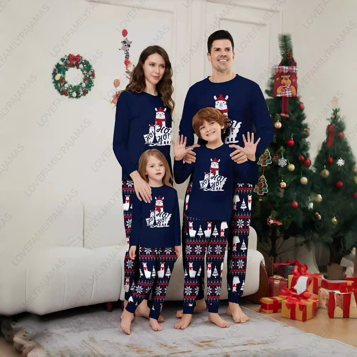Ho Ho Ho Alpaca Christmas Family Pajamas Matching Holiday PJs Set