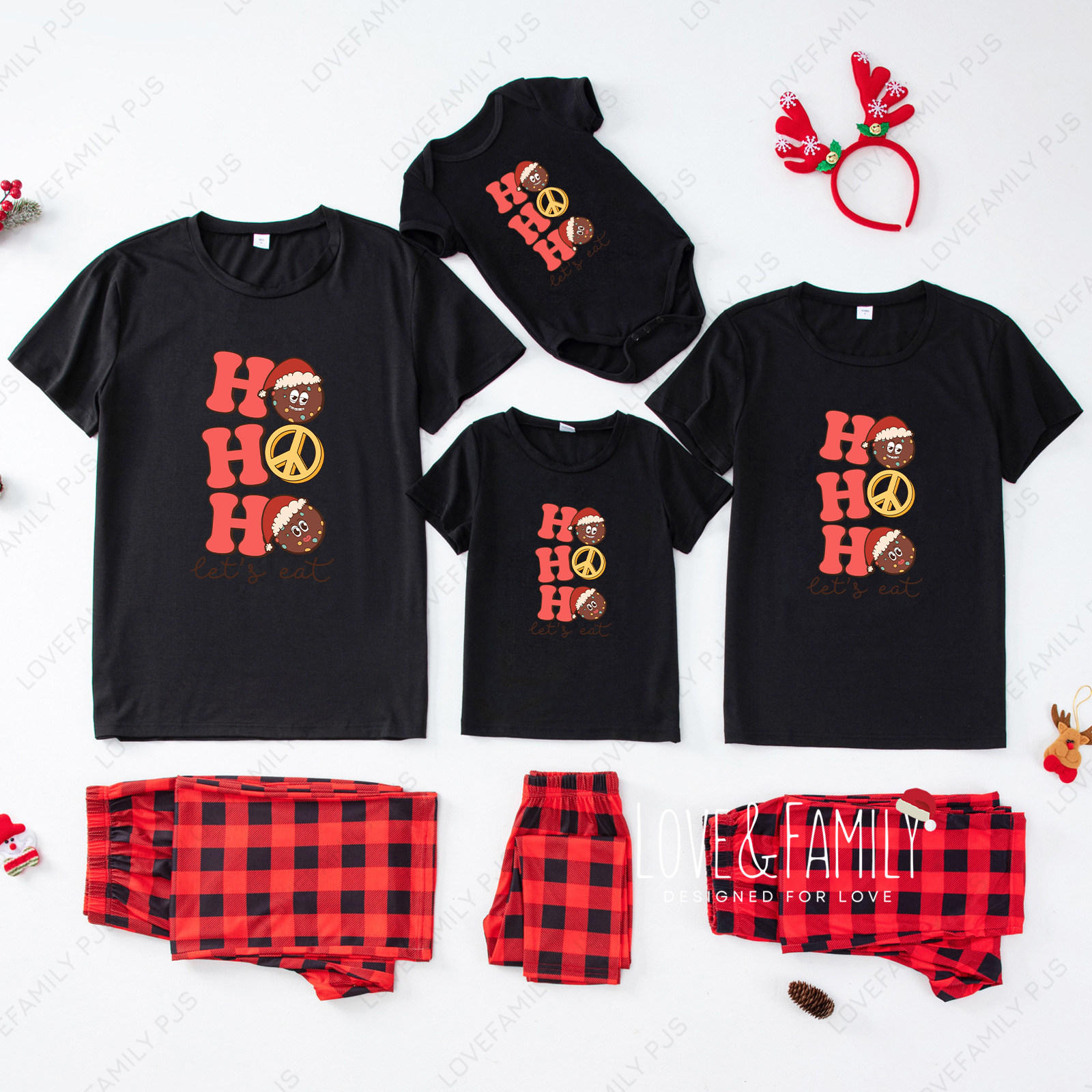Ho Ho Ho Christmas Cookie Print Family Short Sleeve Pajamas Sets