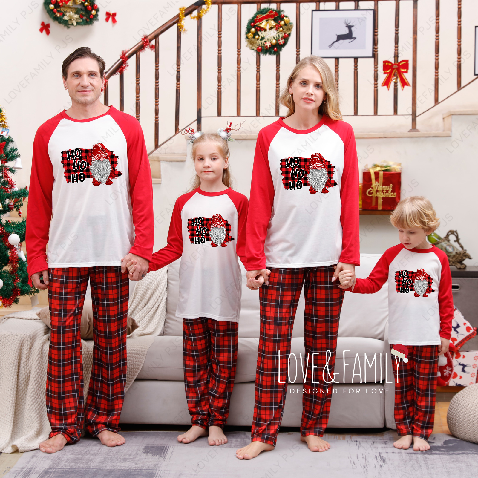 Ho Ho Ho Gnomes Christmas Family Red Plaid Matching Pajamas Sets
