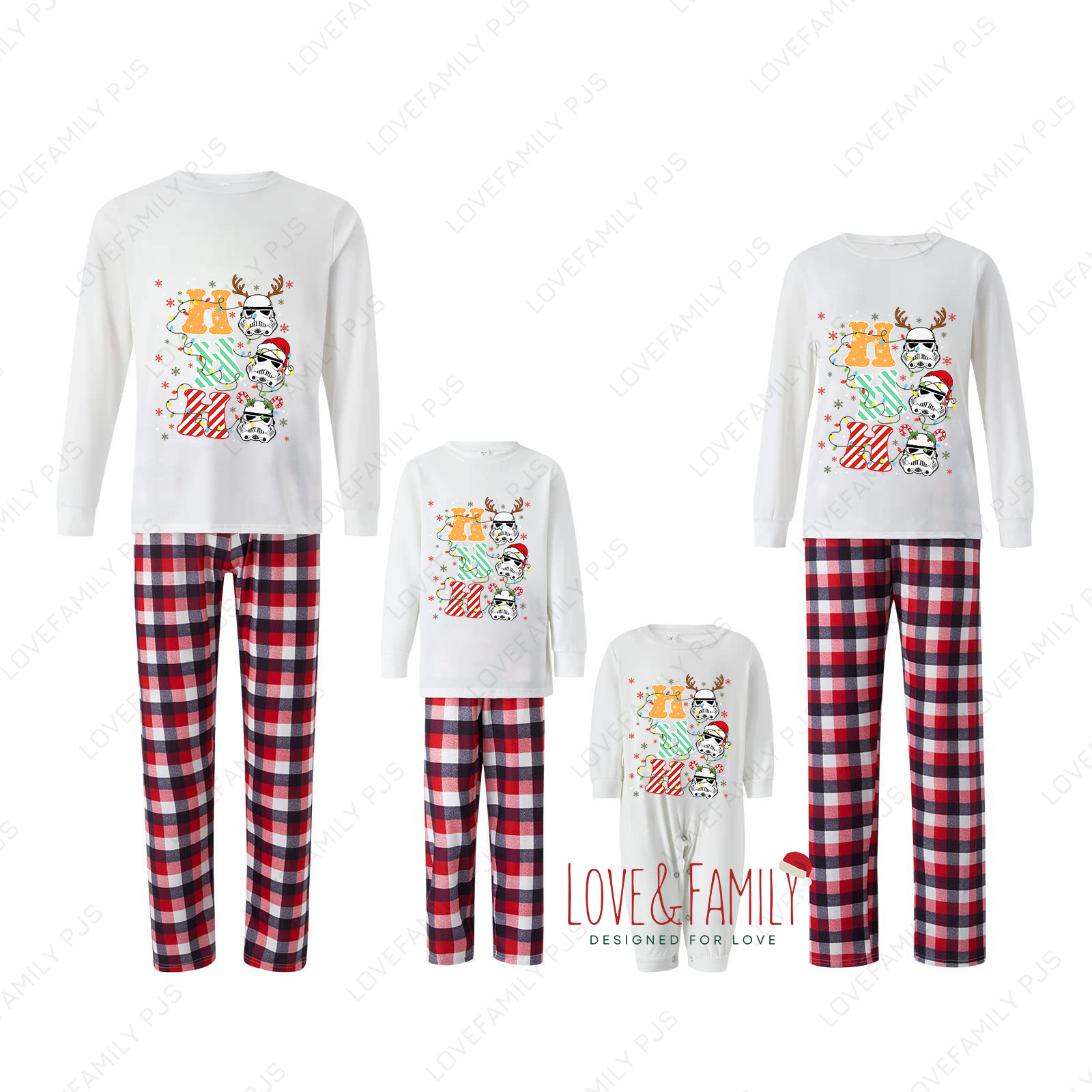 Hohoho! Cartoon Xmas Family Pajamas Star Wars White-Top Holiday Sleepwear Set