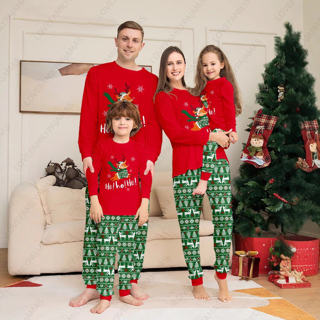 Hohoho! Cute Reindeer Christmas Family Pajamas Matching PJs Sets