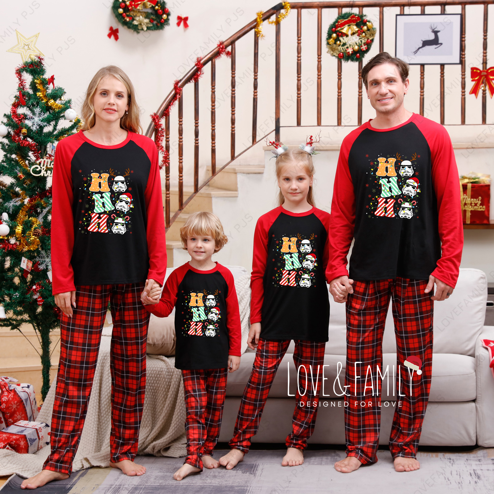 Hohoho! Star Wars Christmas Family Pajamas Red-Sleeve Nightwear Set(Black)