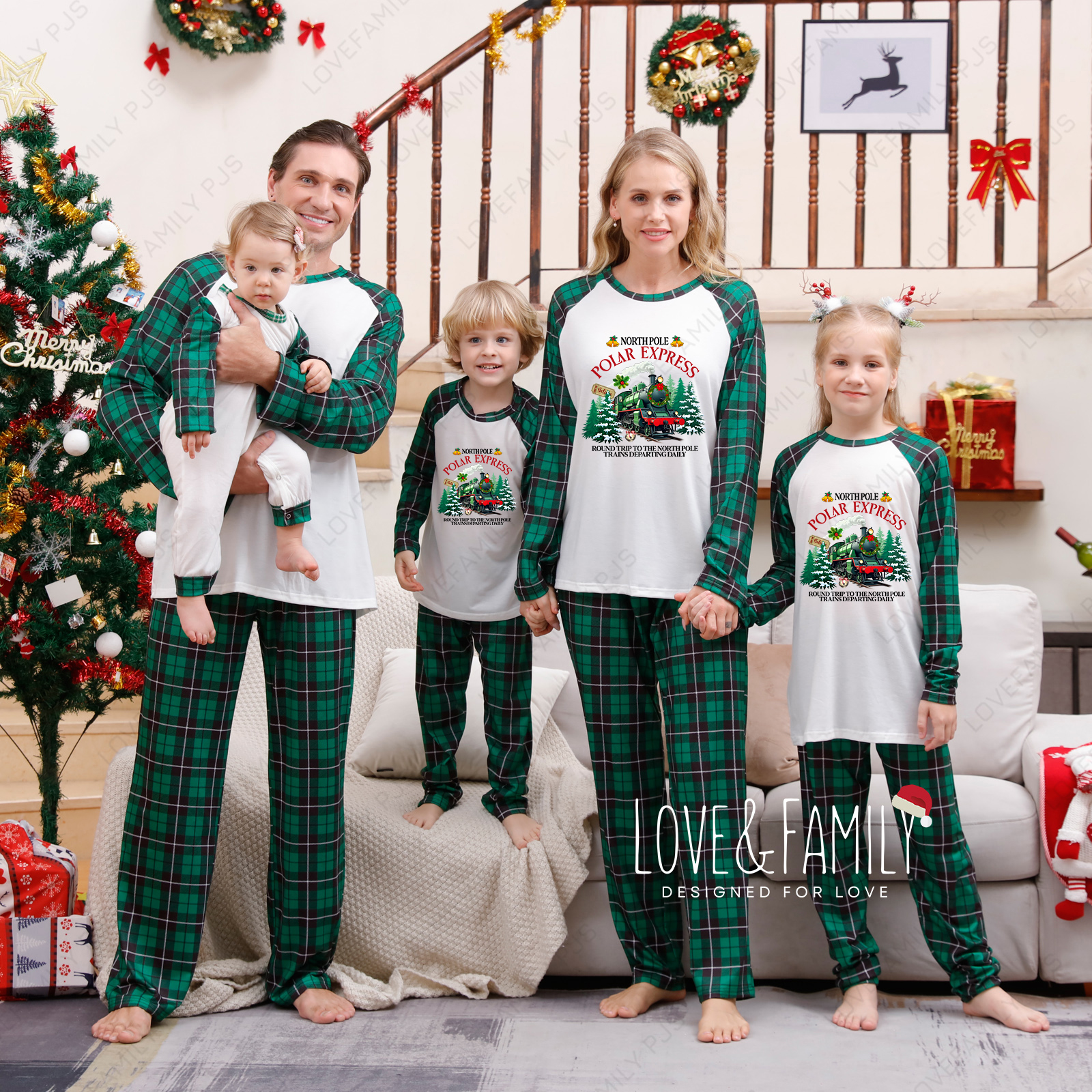 Holiday Sleepwear Set North-Pole Express Green Plaid Family Pajama