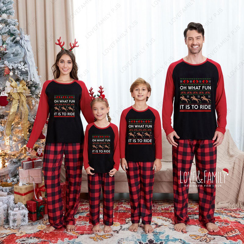 Horse Riding Christmas Family Matching Pajamas Red Black Plaid Pajamas Sets