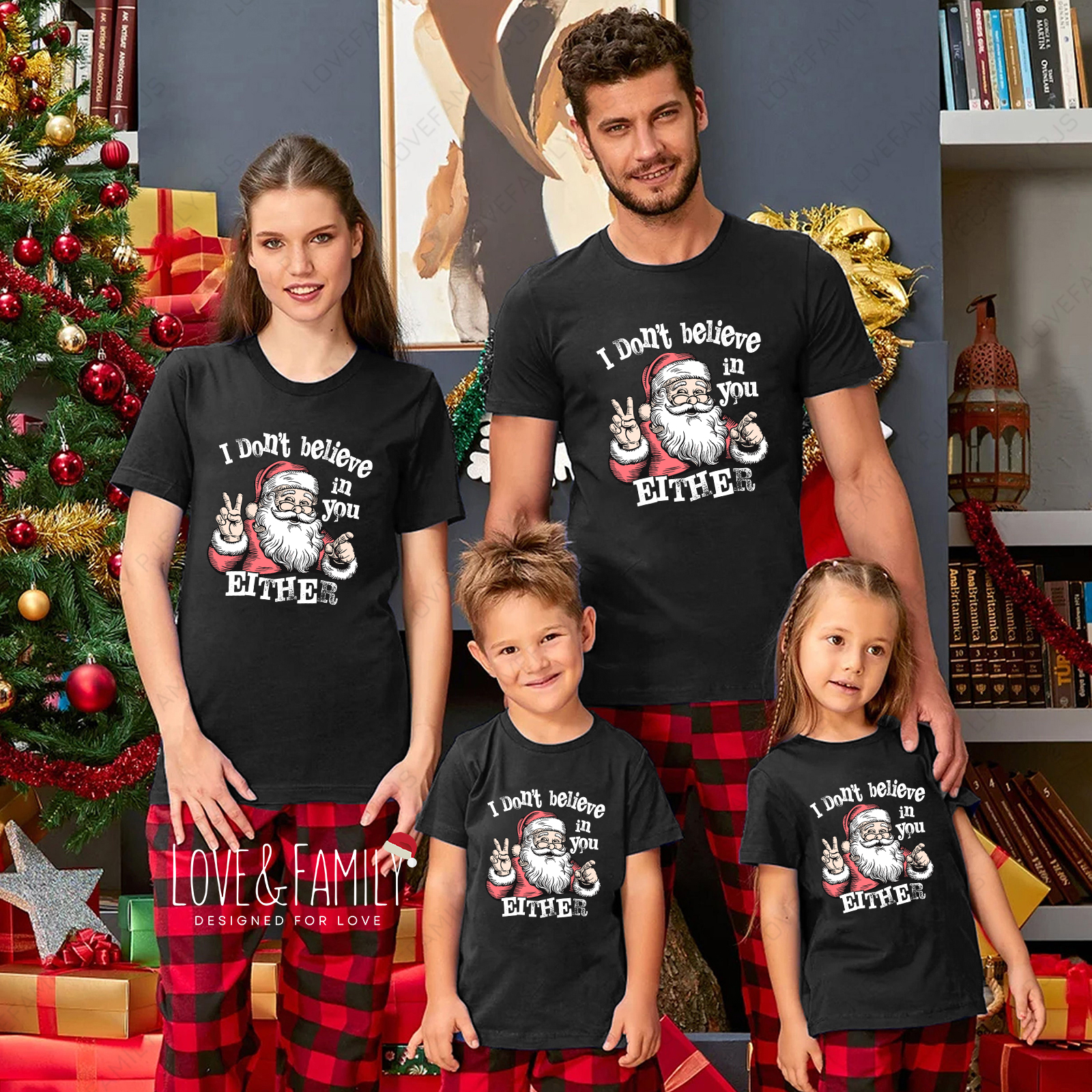 I Don‘t Believe In You Either Santa Funny Christmas Family Pajamas Sets
