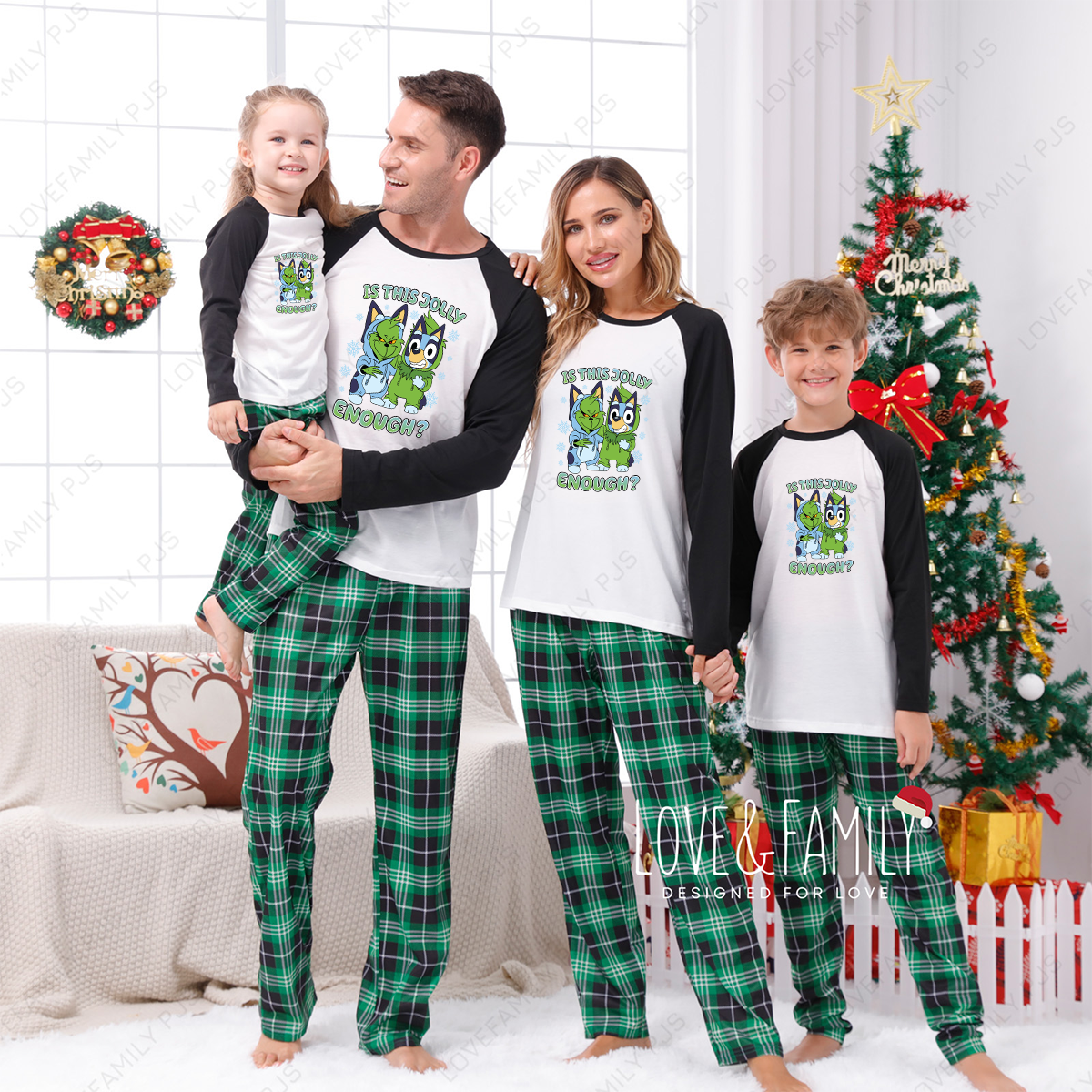 Is This Jolly Enough Bluey Christmas Green Plaid Matching Pajamas Sets