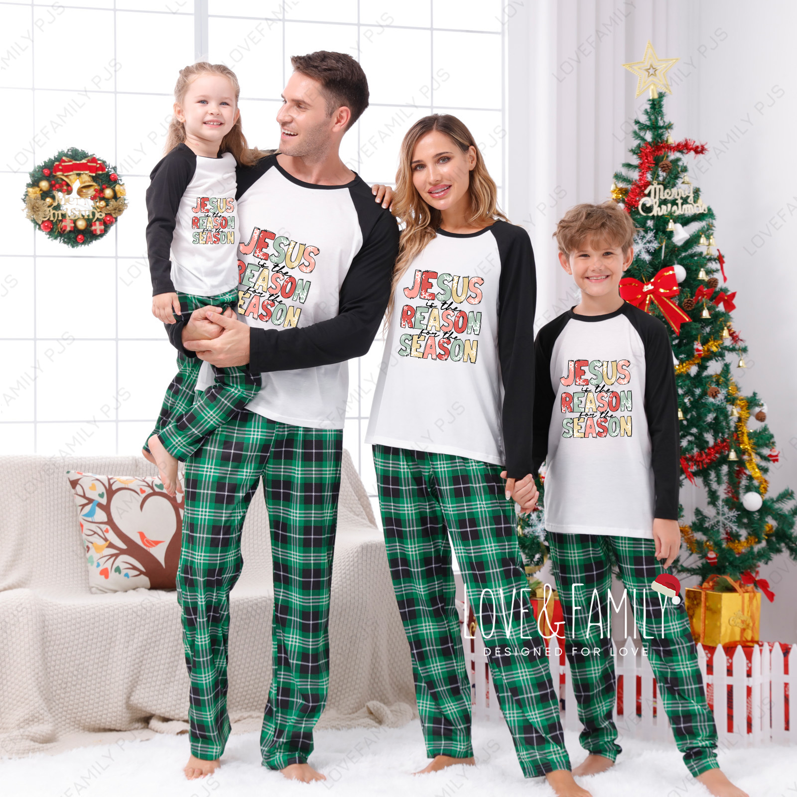 Jesus Is The Reason Family Green Plaid Matching Pajamas Sets