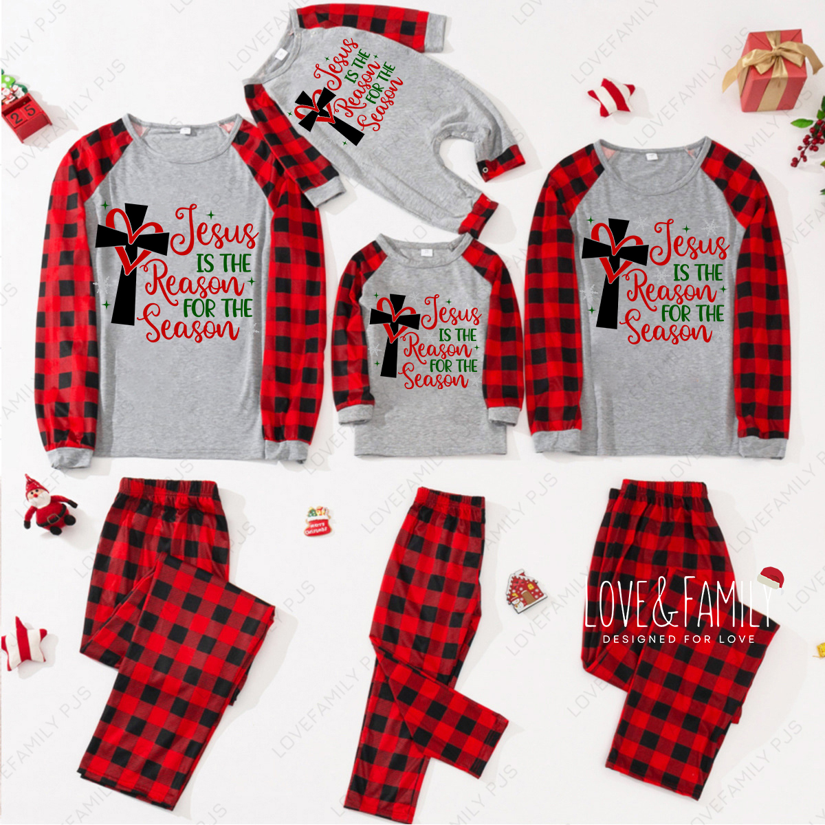 Jesus Is The Reason For The Season Buffalo Plaid PJs Sets(Gray)