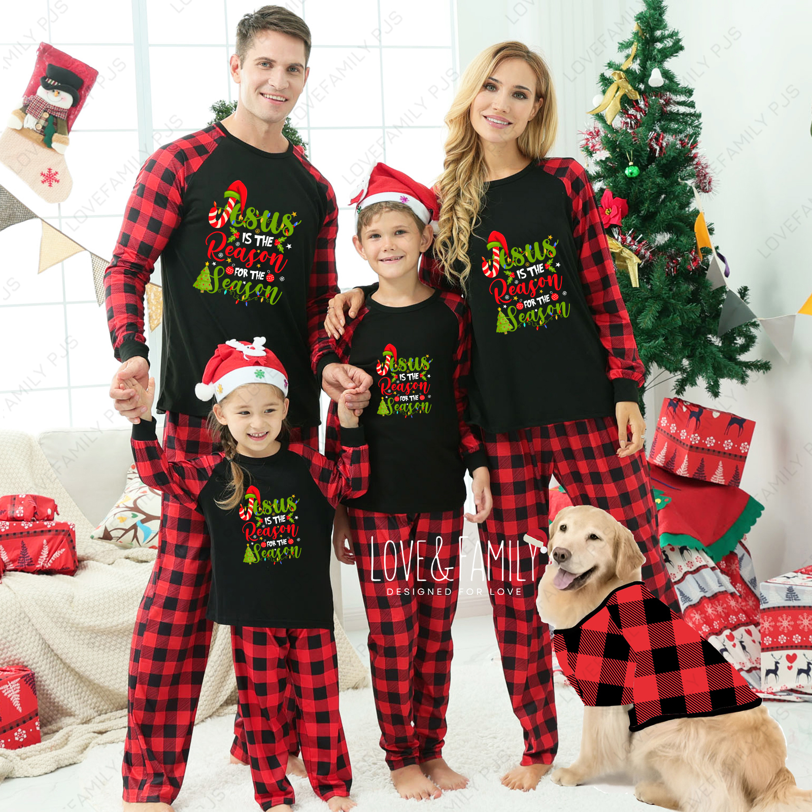 Jesus Is The Reason For The Season Buffalo Plaid Family Pajamas Sets