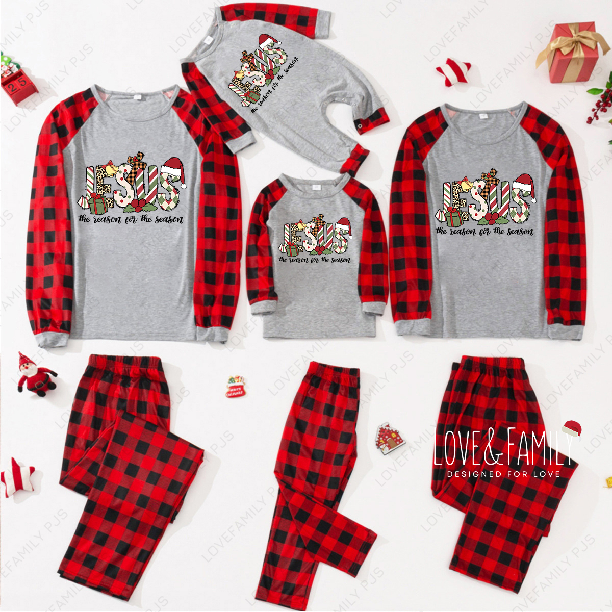 Jesus Is The Reason For The Season Buffalo Plaid Pajamas(Gray)