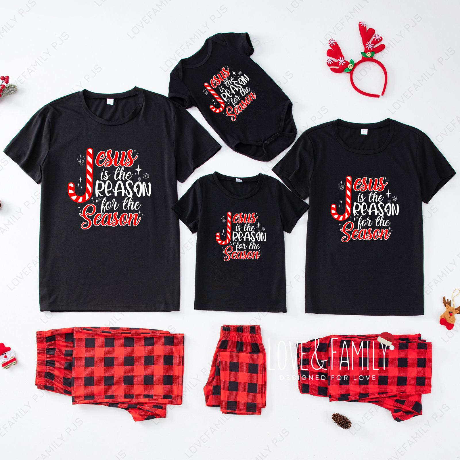 Jesus Is The Reason For The Season Family Short Sleeve Pajamas Sets
