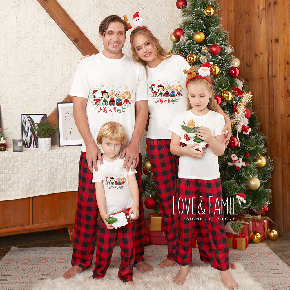 Jolly&Bright Xmas Family Pajamas Peanuts Cozy Holiday Sleepwear Set
