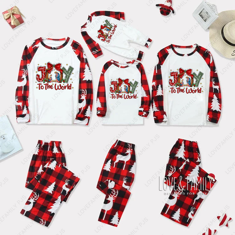 Joy To The World Family Christmas Matching Pajamas Sets