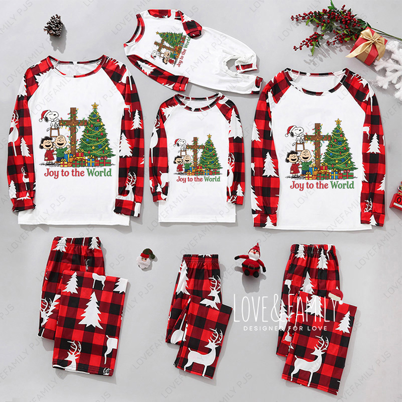 Joy To The World Holiday Sleepwear Set Peanuts Christmas Family Pajamas