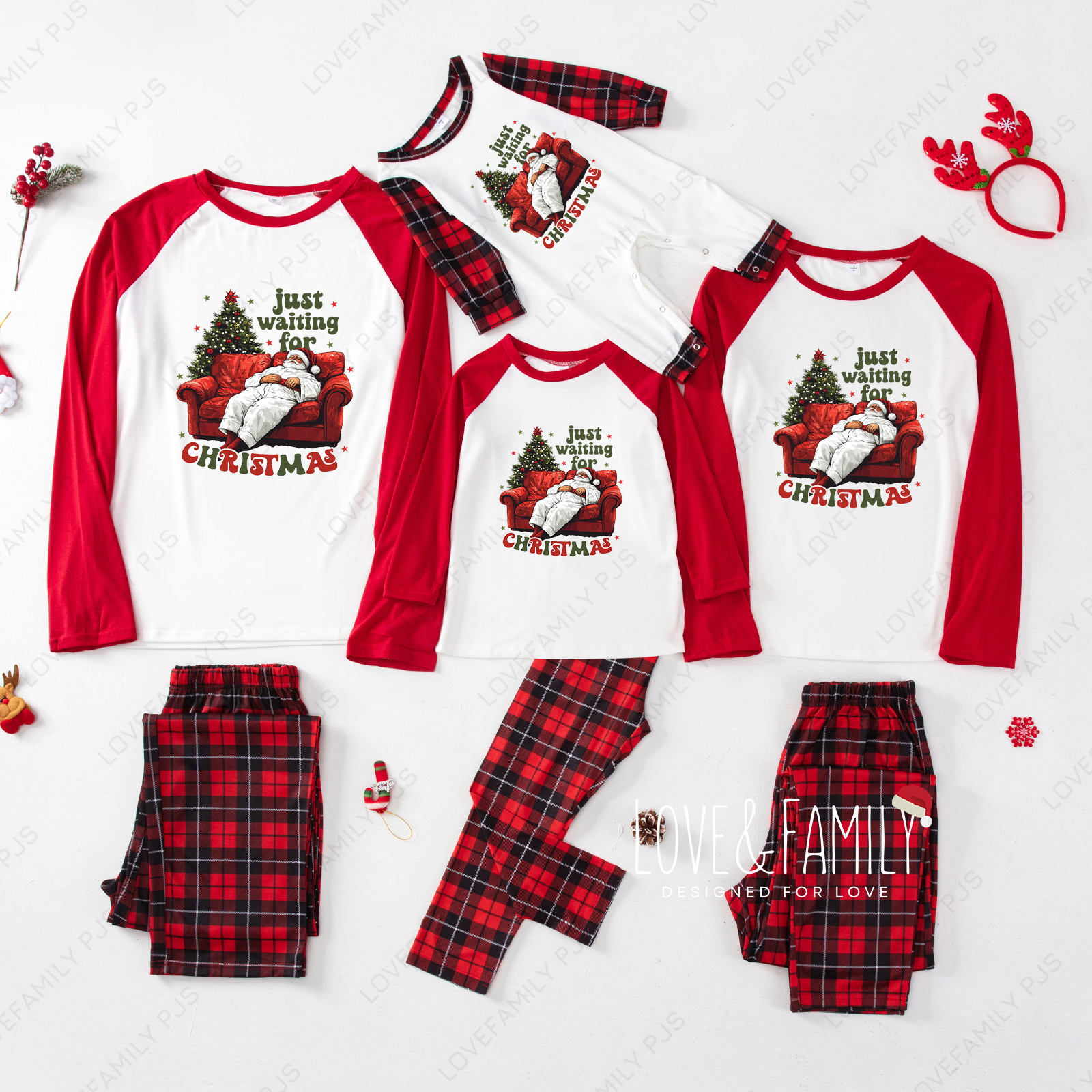 Just Waiting For Christmas Santa Family Red Plaid Matching Pajamas Sets