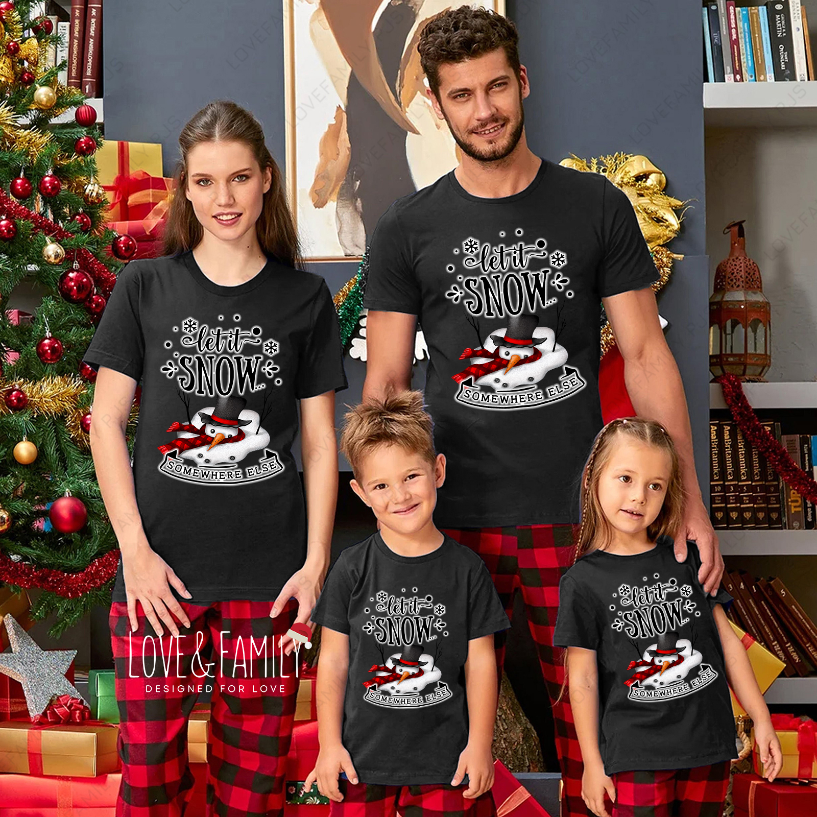 Let It Snow Christmas Family Pajamas Snowman Holiday Matching PJs Set