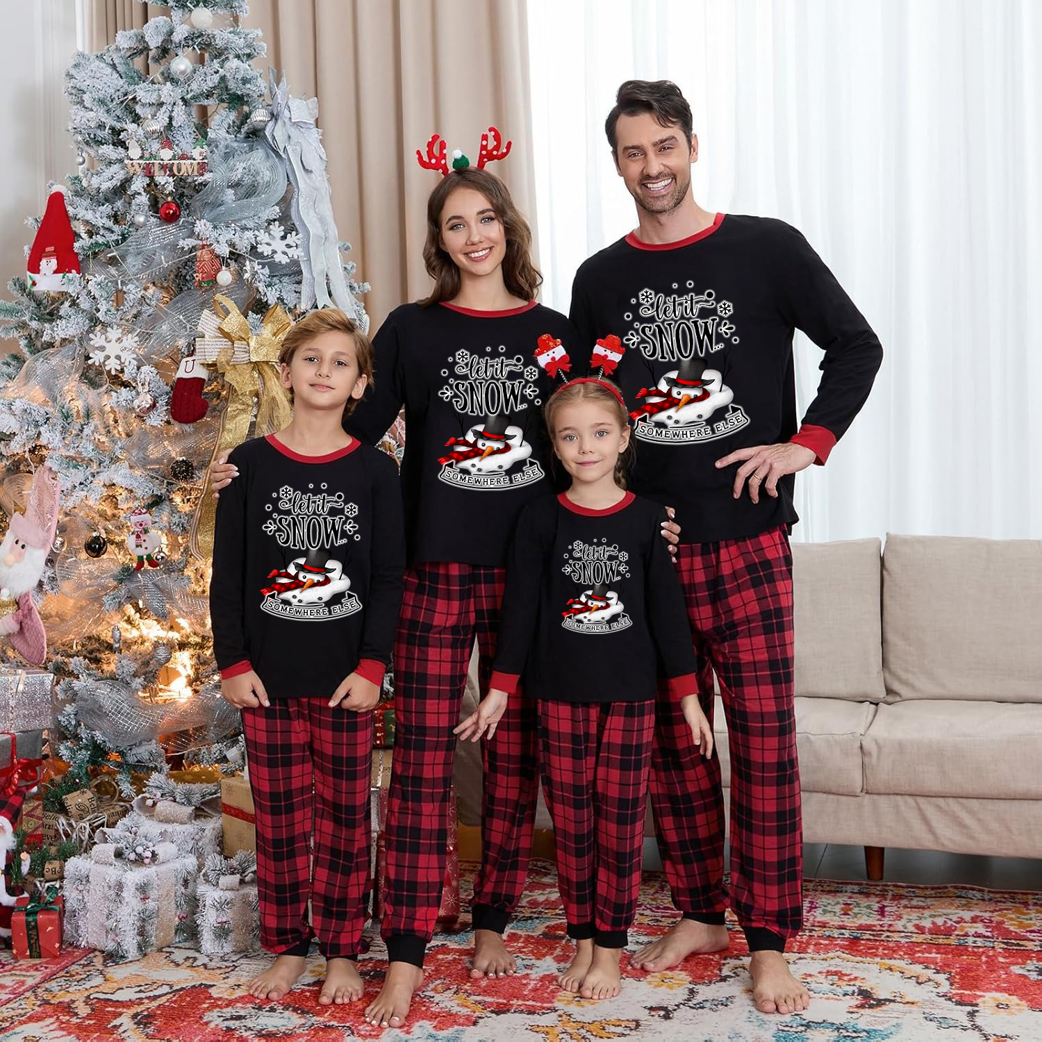 Let It Snow Christmas Matching Pajamas Snowman Family PJs Set