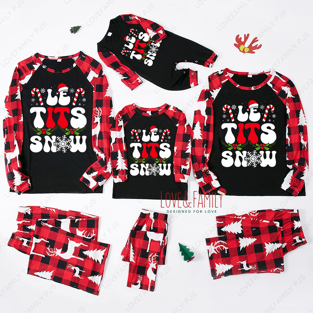 Let It Snow Cute Letter Print Christmas Family Pajamas