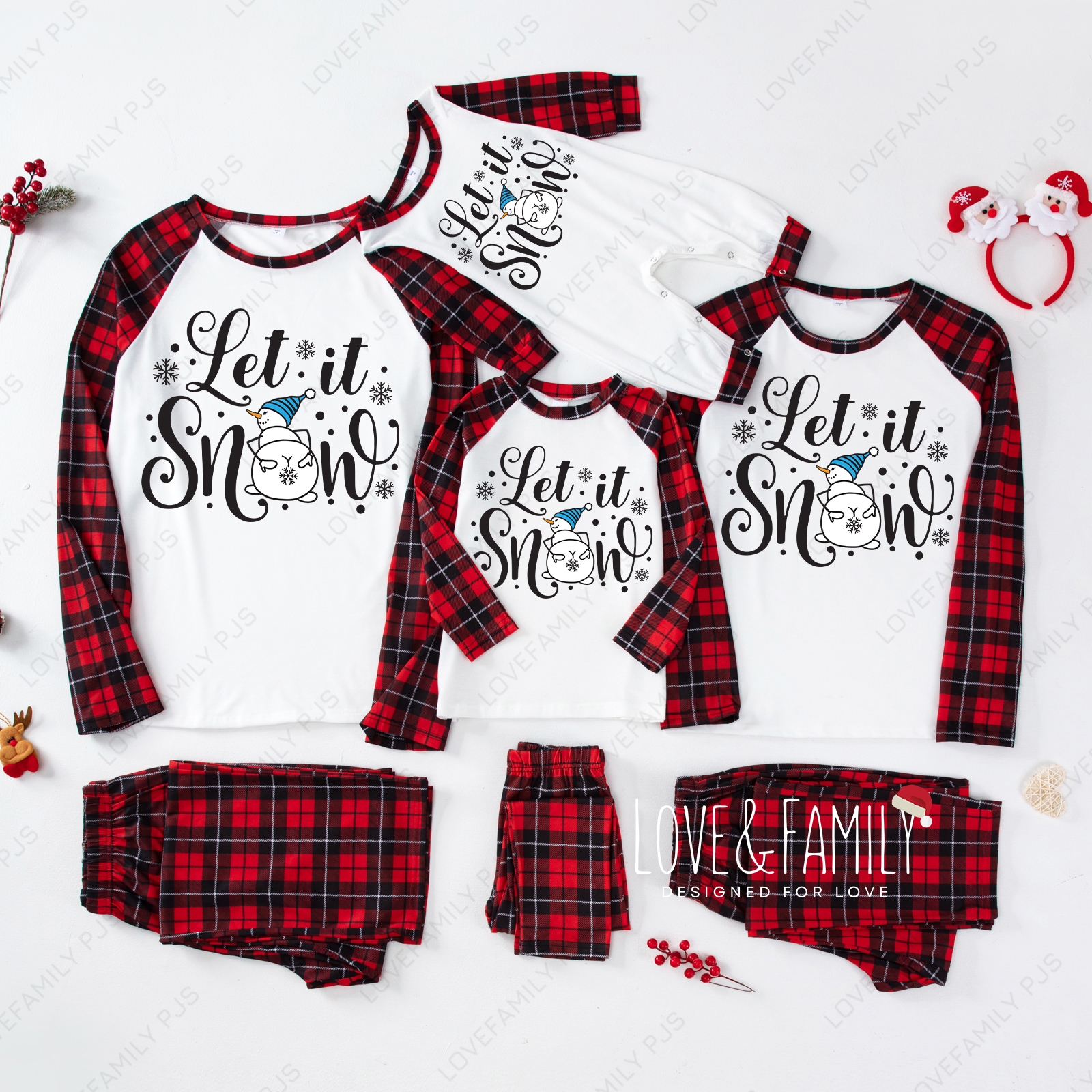Let It Snow Family Christmas Plaid Matching Pajamas Sets
