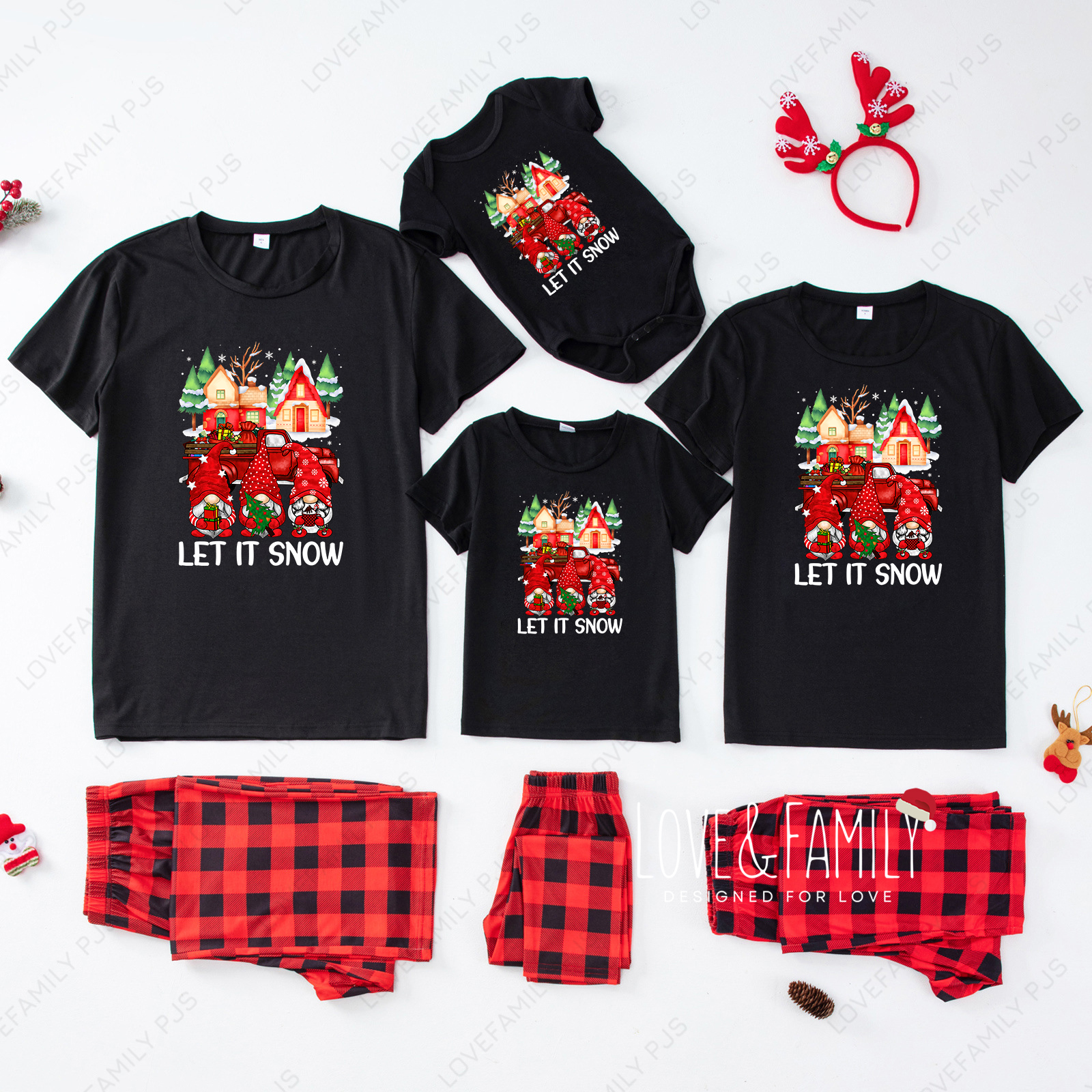 Let It Snow Gnomes Cartoon Print Family Short Sleeve Pajamas Sets