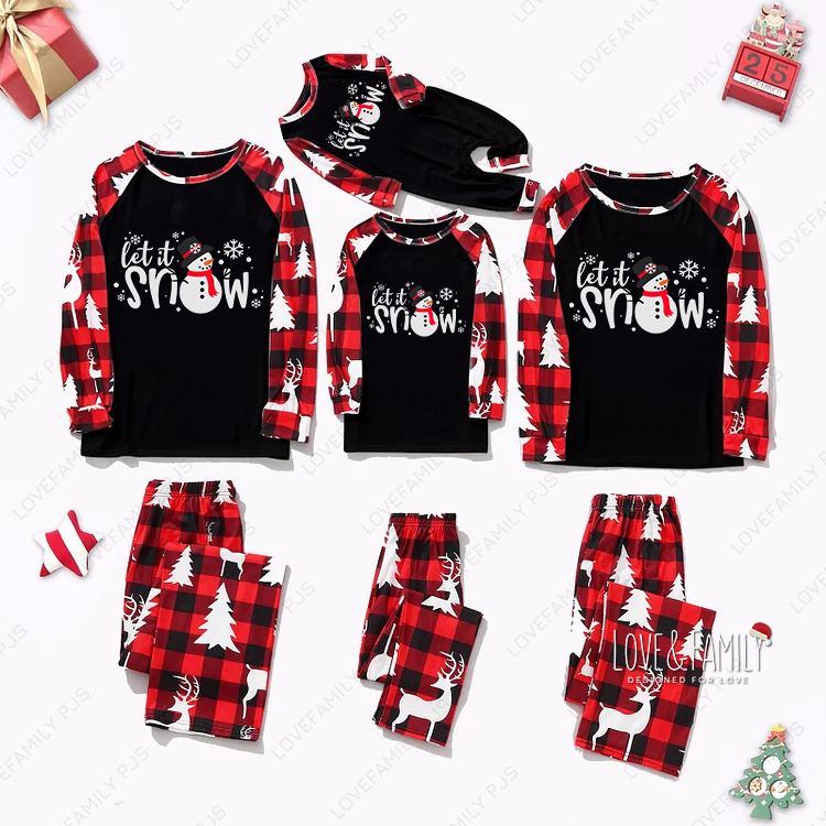 Let It Snow Snowman Christmas Family Matching Pajamas Sets
