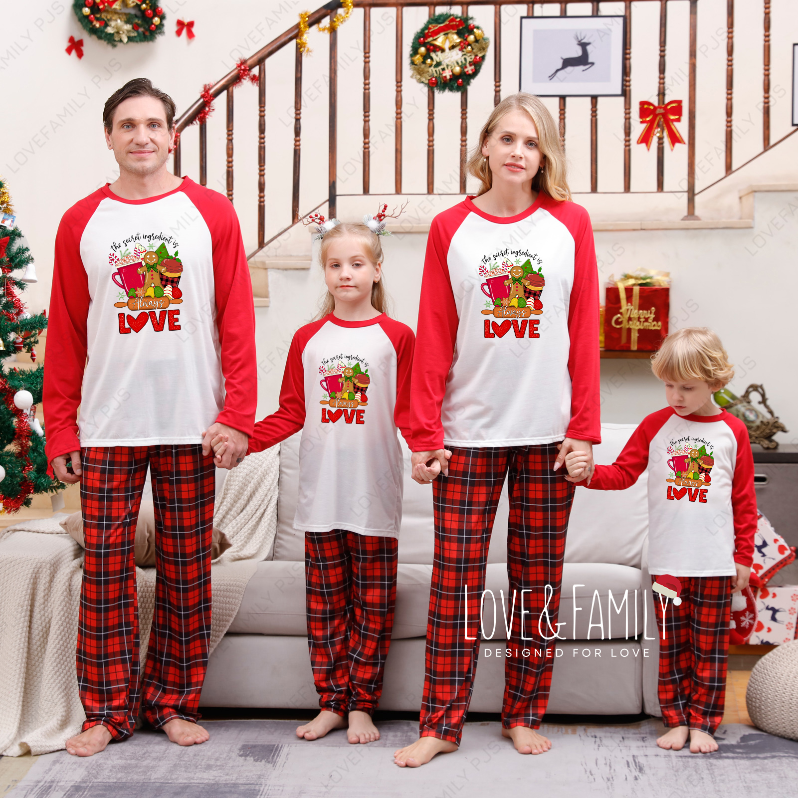 Love Christmas Gingerbread Men Cookie Family Red Plaid Pajamas Sets