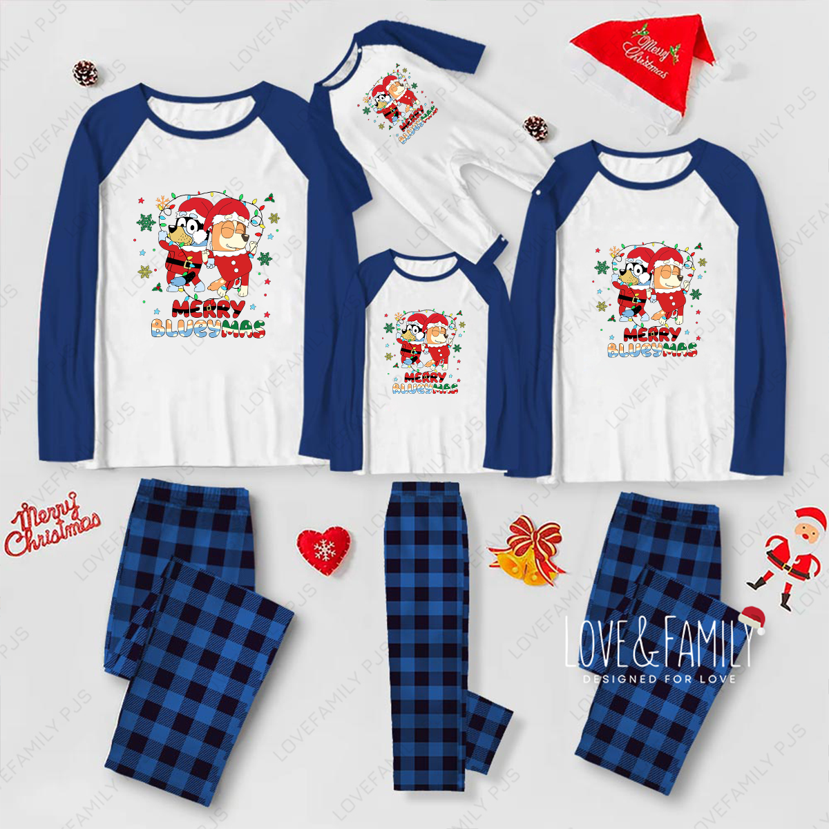 Merry Blueymas Family Matching Blue Plaid Pajamas Set