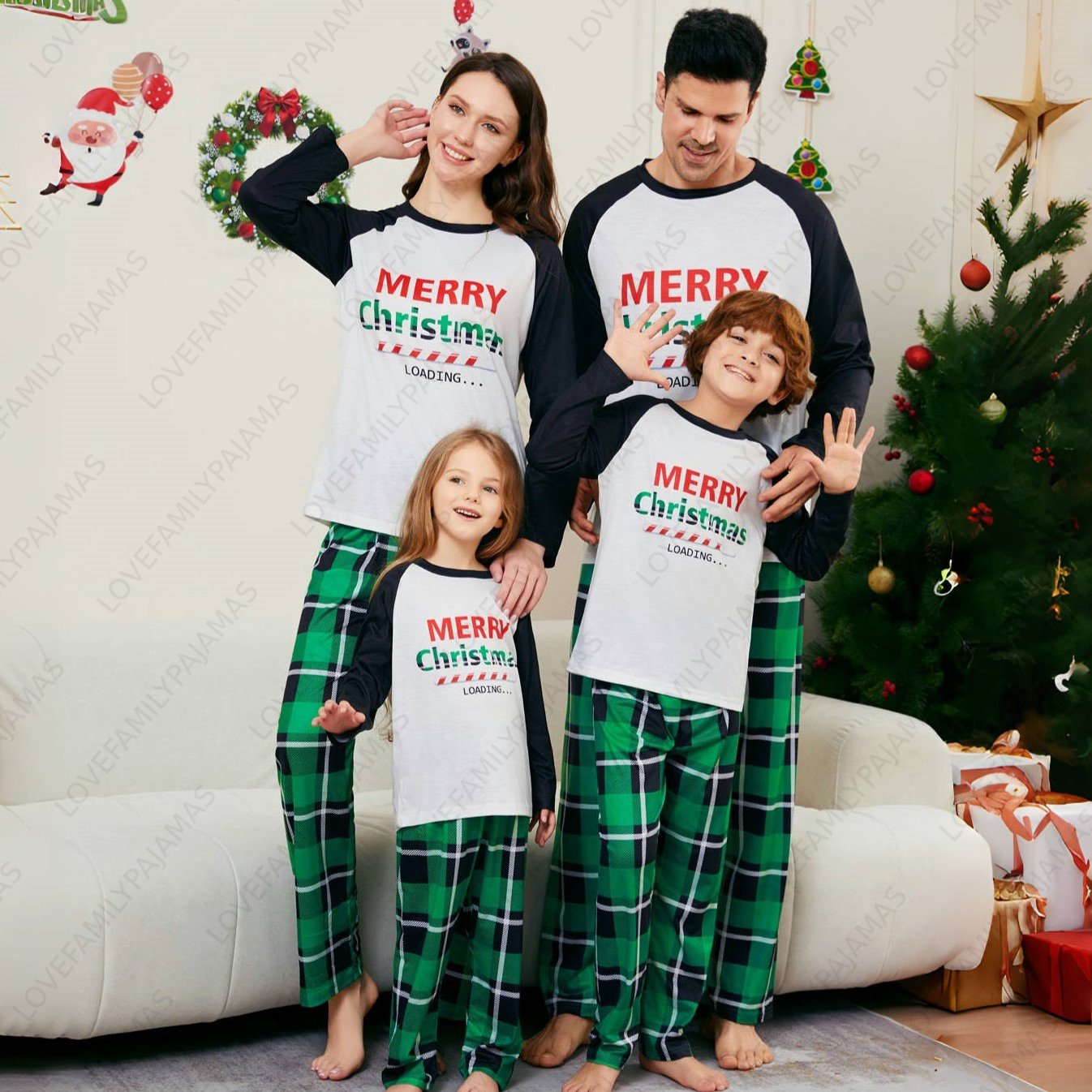 Merry Christams Loading Letters Print Family Matching Pajamas Sets