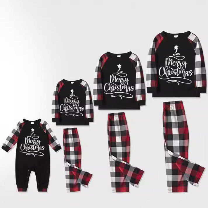 Merry Christmas Black Plaid Family Matching Pajamas Sets