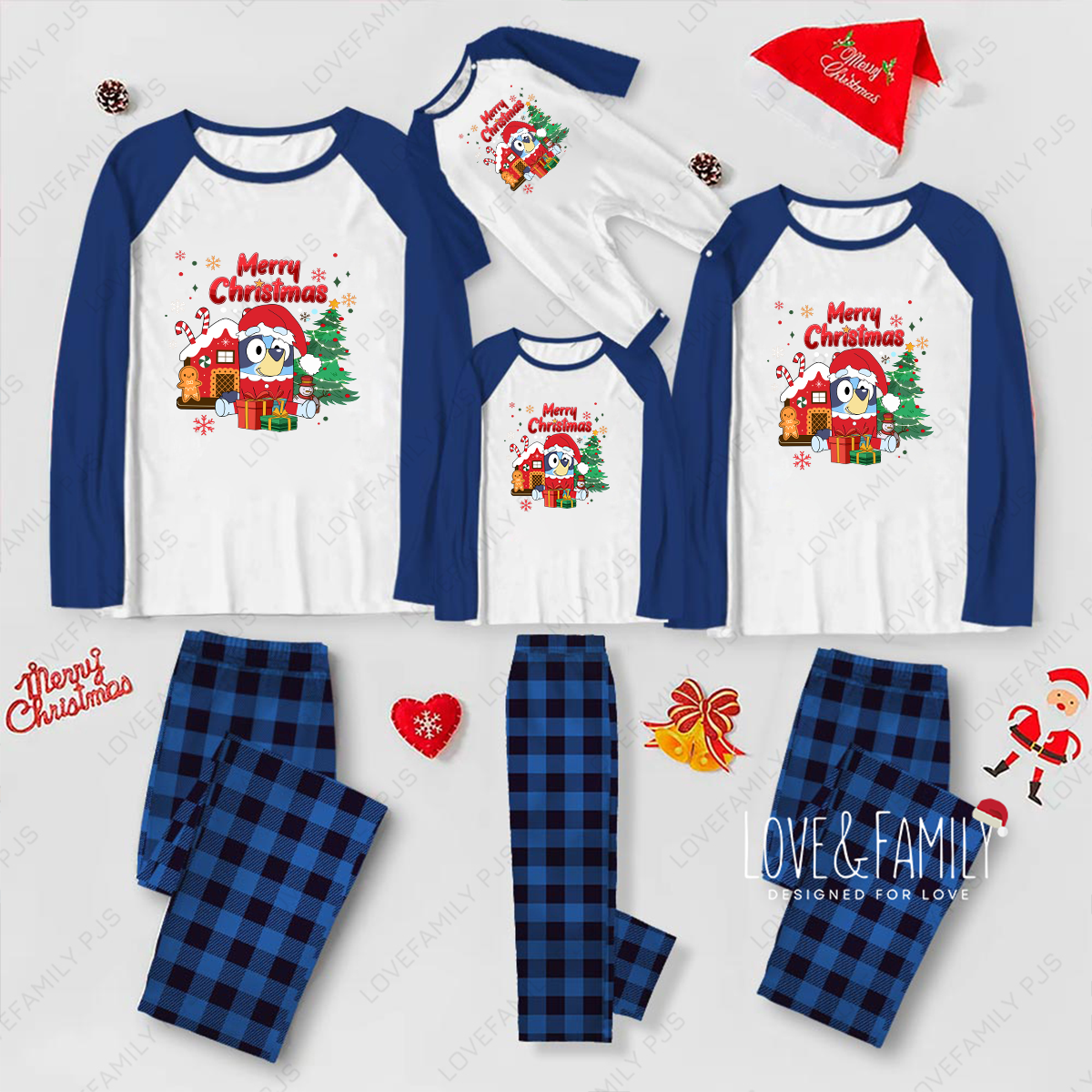 Merry Christmas Bluey Family Matching Blue Pajamas Set