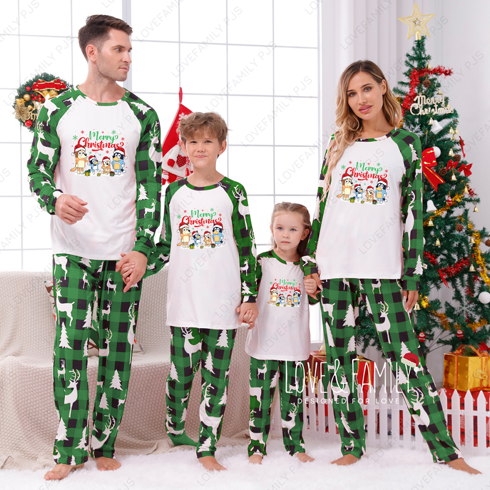 Merry Christmas Bluey Matching Green Pajamas Sets